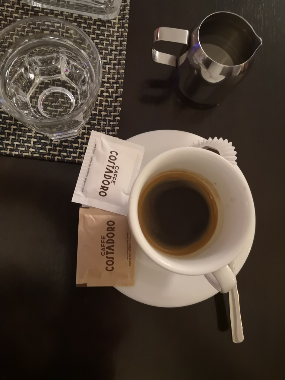 Našťastie sa dalo platiť aj kartou, čo tiež nebýva samozrejmosť. Personál, ktorý nás poznal už z raňajok, nad nami pri platení len nespokojne kýval hlavou. Nedokázali pochopiť, prečo sedíme tu a platíme si za kávu, keď ju máme vedľa v rámci raňajok zadarmo. „Nechutí vám?“ Z tónu, ktorým nám kládli túto otázku nebolo jasné, či sú nahnevaní alebo majú reálny záujem zlepšiť svoje služby. Podľa ich slov bol druh podávanej kávy v oboch miestnostiach rovnaký. Možné to bolo, v tom prípade bol kameň úrazu v príprave. Snaha vysvetliť rozdiel medzi kávou z automatického kávovaru a pákového nebola veľmi úspešná. Výsledkom bolo len ich holé skonštatovanie, že by mali na raňajkovom kávovare zvýšiť intenzitu. Vzhľadom na následnú degustáciu ich „intenzívnejšej“ rannej kávy však viem povedať, že toto opatrenie veľmi nepomohlo, espresu určite nie.