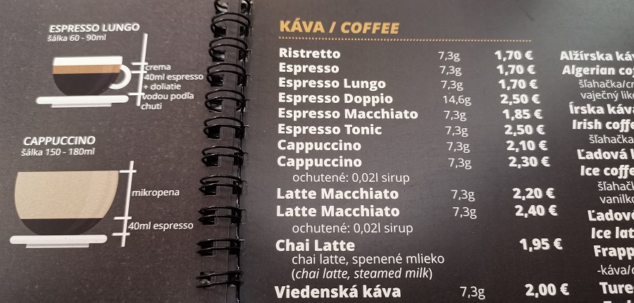 Hneď, ako sme sa usadili, prišla čašníčka. V podstate sme sa ani nestihli zorientovať, čo majú v ponukovom lístku, ktorý bol položený na stoloch. Kaviareň Color má vo svojej ponuke široký výber káv, alkoholické a nealkoholické nápoje, teplé nápoje, limonády, frappé, horúce maliny, francúzske palacinky. Prekvapilo ma, že chladnička s dezertmi bola prázdna, takže neviem povedať, aké dezerty majú vo svojej ponuke. To tiež považujem za nedostatok, nakoľko bola nedeľa a som presvedčená, že ľudia by si zákusok ku káve radi dali. Objednali sme si malé cappuccino v hodnote 2,10€. Tu však musím pochváliť chuť kávičky, ktorá bola veľmi dobrá. To som ani nečakala, že bude cappuccino také chutné. Natoľko som sa nechala pohltiť dizajnom, že som kaviareň zle odhadla. Ako sa hovorí, zdanie často klame. Používajú výbornú taliansku kávu značky Musetti, ktorá je na trhu už od roku 1934. Čašníčka bola mladá a sympatická, len som z nej mala pocit, že sa niekam ponáhľa. Len-len čo sme dopili kávu a už nám aj odnášala šálky. Káva jednoznačne zachránila dojem z kaviarne, ale na jej zariadení by sa isto dalo popracovať. Až čas ukáže, či dám tejto kaviarničke ešte jednu šancu.