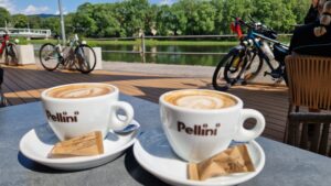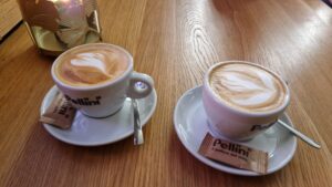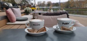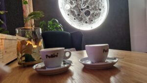 Organila sa špecializuje na vegetariánske a vegánske jedlá, pričom kladie dôraz na kvalitu a lokálne suroviny. V ponuke nájdete napríklad hummus so zeleninou a kváskovým chlebom, placky so špenátom, vegan burger, ale aj lahodné dezerty či RAW koláče. Pre tých, ktorí obľubujú niečo sladšie, sú tu aj lievance s lesným ovocím a javorovým sirupom. My sme si tentokrát vybrali cappuccino, ale ochutnali sme tam už aj osviežujúcu limonádu. Cappuccino bolo servírované v elegantnej bielej šálke s logom Pellini, čo okamžite upútalo našu pozornosť. Na povrchu nápoja bol jemne nakreslený vzor z mliečnej peny, ktorý dodával káve vizuálny pôvab. Chuť cappuccina bola vyvážená, krémová a s jemnou horkosťou, čo svedčilo o vysokej kvalite kávy. Značka Pellini pochádza z talianskej Verony, kde bola založená už v roku 1922. Rodinná pražiareň si zakladá na dlhoročnej tradícii a nekompromisnej kvalite. Pellini si pre svoje produkty vybrali certifikáciu Kosher, a táto značka získala aj medzinárodné ocenenia za svoju výnimočnú kávu. Pellini je synonymom talianskej dokonalosti v každej šálke. Večer v Organile bol pre nás opäť nezabudnuteľný, aj keď sme tentokrát sedeli vo vnútri. Bolo to miesto, kde sa človek cíti ako doma v teple, obklopený prírodou a vôňou čerstvo uvarenej kávy. Keď sme sa s plnými srdcami lúčili s týmto miestom, vedeli sme, že sa sem vrátime. Organila má totižto schopnosť vytvárať z každého okamihu pekný zážitok – či už je to pohľad na Váh z terasy, alebo pohľad na svietiaci mesiac vo vnútri.