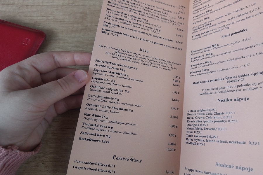 Ceny boli prijateľné. Neboli ani nejako veľmi drahé, keďže sme boli v meste, v centre. Človek by to čakal trošku drahšie. Ale tak káva nás vyšla na niečo okolo 2 euro a potom palacinka na 5 euro. To je taká klasika.