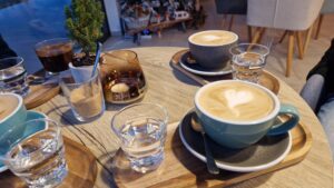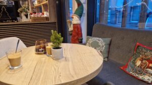 Pri prvom kroku na drevenú terasu, ktorá jemne objíma kaviareň v tvare písmena L, nás okamžite obklopí príjemný šum vetra hrajúceho sa v listoch stromov. Táto terasa, pokrytá krásnym dreveným prístreškom, nám poskytuje miesto, kde môžeme v tichosti obdivovať okolitú zeleň a oddať sa sladkému ničnerobeniu, zatiaľ čo slnečné lúče jemne prechádzajú cez drevené latky tancujúc na našich stoloch. Tento výhľad, ktorý sa otvára priamo do parku, nám umožňuje zabudnúť na ruch každodenného života a ponoriť sa do krásneho sveta prírody. Interiér kaviarne je dokonalým pokračovaním tejto pokojnej atmosféry. Presklené steny vpúšťajú dovnútra záplavu prirodzeného svetla, ktoré sa hrá s jemnými tónmi dreva a vytvára v priestore pocit tepla a útulnosti. Vnútorné zariadenie je premyslene zladené v jemných farebných odtieňoch, ktoré harmonizujú s okolitou prírodou. Pohodlné kreslá a stoličky sú usporiadané tak, aby každý našiel svoje miesto, či už na romantické posedenie vo dvojici alebo na príjemný rozhovor s priateľmi. Jednou z najväčších radostí pre rodiny s deťmi je detský kútik, ktorý je útulne zariadený a plný hračiek. Kým si rodičia môžu v kľude vychutnávať svoj obľúbený nápoj, deti sa bezstarostne hrajú ponorené do svojho sveta fantázie. A ak detský kútik nestačí, len pár krokov od kaviarne sa nachádza krásne ihrisko, kde sa deti môžu vybehať a zabaviť na čerstvom vzduchu, zatiaľ čo rodičia stále majú svoje ratolesti na dohľad.