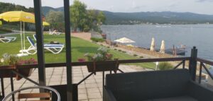 Atmosféra tu pripomínala morské prostredie, cítili sme sa, akoby sme boli pri mori. Toto miesto je ideálne na strávenie lenivých popoludní alebo príjemných večerov so skvelým nápojom v ruke. Okrem možnosti vychutnať si kúpanie v Šírave, táto hotelová pláž poskytuje aj príležitosť osvieženia v súkromnom bazéne. Vychutnali sme si kúpeľ a následne relax na pláži s knihou, a potom sme sa vybrali do kaviarne na šálku voňavej kávy. Exteriér je zariadený kaviarenským a ratanovým nábytkom a slnečníkmi, ktoré poskytujú ochranu pred letnými lúčmi a sú zárukou autentickej atmosféry odpočinku. Kaviareň je víziou štýlu a komfortu. Súčasný dizajn sa spája s prvkami prírody. Kaviareň ponúka nádherné panorámy na rozsiahlu vodnú plochu Šírava.