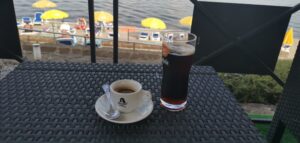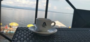 V Kaviarni nájdete bohatú ponuku alkoholických a nealkoholických nápojov, osviežujúcich limonád až po aromatické kávy. Espresso, cappuccino alebo ľadová káva – každý nápoj je pripravovaný s láskou a dôrazom na kvalitu. Vybrali sme si čapovanú kofolu a cappuccino, ktoré nám bolo podané v elegantnej bielej šálke zdobenej logom Brasiliana caffé, garantujúcej intenzívnu chuť a dokonalú penu. Jedinou malou výhradou je, že káva sa podávala bez priloženej vody a malej sladkej drobnosti. Ako už bolo načrtnuté, v tomto podniku servírujú kvalitnú taliansku kávu Brasiliana caffé. Spoločnosť Brasiliana caffé sa nesie v duchu tradície začatej v roku 1966, v Terste, ktoré je považované za kávové srdce Talianska. Personál kaviarne je príkladom profesionality a srdečnosti. Či už pochádzate z blízkeho okolia alebo ste len na návšteve, na pláži a v kaviarni nájdete kúsok domova. Môžete sa osviežiť, relaxovať alebo sa len tak pokochať krásnym výhľadom. Toto miesto je stvorené pre nezabudnuteľné momenty.