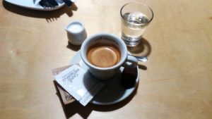Prejdime ale na náš primárny záujem – na kávu. Na výber tu máme taký ten základ, nič „vydumané“. Dnes som to stavil na espresso lungo s mliekom (+ nejaký ten brunch, proste som neodolal). Na pohľad bolo espresso oku-lichotiace a prišlo aj s malým pohárikom vody a chutnou čokoládovou sušienkou. Čo sa týka chuti, káva bola príliš horká. Mlieko a cukor spravili svoje ale i tak ma kávová zmes nenadchla. Nemôžem povedať, žeby išlo o nekvalitnú kávu, avšak košickí konkurenti ma už naučili na príjemnejšie chute pri espresse. Kávová zmes: Café Reserva