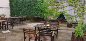 Budova kaviarne je tradične vyzerajúca stavba s bielou fasádou a tmavou strechou. Pred budovou je kamenný múrik s nápismi „KAVÁRNA PRAŽÍRNA“ a „KERAMIKA VÍNO DÁRKY“. Okolie budovy je upravené s kríkmi a pred budovou na plote sú umiestnené rôzne dekoratívne hrnčeky. Celkovo budova pôsobí útulne a tradične, čo láka návštevníkov už na prvý pohľad. Interiér kaviarne je zariadený v rustikálnom štýle s dreveným nábytkom. Stoly a lavice sú vyrobené z masívneho dreva a majú vyrezávané detaily, ako napríklad srdiečka. Lavice sú vybavené červenými poduškami pre väčšie pohodlie. Na stenách sú dekoratívne taniere a iné ozdobné predmety, ktoré dodávajú priestoru tradičný a útulný vzhľad. V rohu miestnosti sa nachádza keramická pec, ktorá pravdepodobne slúži ako dekorácia aj funkčný prvok. Celkovo interiér pôsobí teplým a príjemným dojmom vhodným pre relaxáciu a príjemné posedenie. Exteriér kaviarne je zariadený jednoduchými drevenými stolmi a stoličkami, ktoré sú rozmiestnené po vonkajšom priestore. Steny sú pokryté popínavými rastlinami, ktoré vytvárajú príjemnú a zelenú atmosféru. Na stoloch sú malé dekoračné predmety, ako napríklad vázy s kvetmi, ktoré dodávajú miestu útulný vzhľad. Priestor je otvorený, čo umožňuje návštevníkom užívať si pobyt na čerstvom vzduchu.