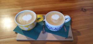 Obsluha v kaviarni Jizba je milá a profesionálna. Každý zákazník sa tu cíti vítaný a obsluha sa vždy snaží splniť všetky jeho požiadavky. Káva je servírovaná v krásnych keramických šálkach, ktoré sú ručne zdobené. Naše cappuccino bolo podávané na elegantnom drevenom podnose, ktorý dotváral celkový estetický zážitok. Chuť kávy bola výnimočná, s jemnými tónmi, ktoré odrážali starostlivú prípravu a kvalitné suroviny. Okrem kávy si môžete vychutnať aj rôzne druhy čajov, domáce koláče a ďalšie lahodné zákusky. Jizba je ideálnym miestom na relaxáciu s priateľmi alebo na pokojné chvíle s knihou. Kaviareň a pražiareň Jizba v Luhačoviciach je skutočným klenotom. Ponúka nielen vynikajúcu kávu a lahodné občerstvenie, ale aj krásne keramické výrobky a útulné prostredie. Je to ideálne miesto na relaxáciu, stretnutia s priateľmi alebo na romantický večer. Ak sa nachádzate v Luhačoviciach, určite si nenechajte ujsť návštevu tohto jedinečného miesta.