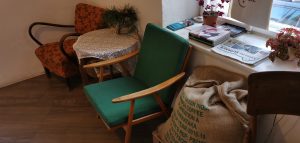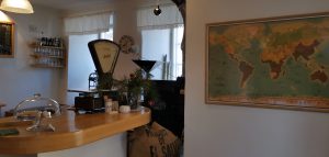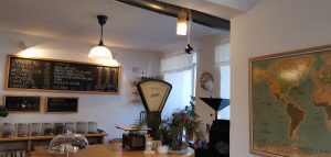 Samozrejme, že sme túto kaviareň nemohli obísť, i keď v tomto prípade kaviareň je prehnané slovo, skôr by som povedala pražiarnička. Nakoľko priestor pražiarne je veľmi maličký, ale o to útulnejší. Pražiareň IDEÁL je zariadená v retro štýle. Hneď prvé, čo vás zaujme pri vstupe do miestnosti, je bezpochyby stará váha. Priestoru na sedenie bolo málo, ale aj sám pán za barom nám povedal, že toto nie je myslené úplne ako kaviareň. Len jednoducho dali možnosť, aby si zákazník aj priamo v pražiarni mohol vypiť svoju obľúbenú šálku kávy. My sme sa usadili do starých kresiel, ktoré neboli veľmi pohodlné, ale na druhej strane výborne podčiarkovali celkovú atmosféru. Hlavnou dominantou tejto pražiarne je barový pult, ktorý má dômyselné prevedenie. Nachádza sa tu, ako inak, aj stroj na praženie kávy. Jednu vec, čo by som tejto prevádzke predsa len vytkla, je, že nemali sociálne zariadenie, aj keď rozumiem, že sa nejedná o kaviareň v pravom slova zmysle. Miestnosť dekorujú vrecia, v ktorej sú ozajstné zelené zrná kávy, ako nám sám čašník neskôr prezradil. Pôvodne som si myslela, že sú to len vrecia určené na dekoráciu. Zaujímavá je aj veľká mapa na stene. Miestnosť taktiež dopĺňajú obrazy a časopisy. Celkovo na mňa tento priestor pôsobil veľmi pohodovo.