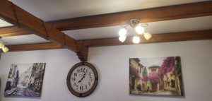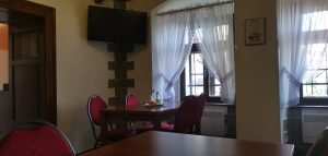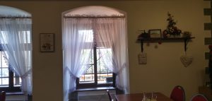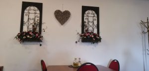 Zaparkovali sme na veľkom odstavnom parkovisku a naše ďalšie kroky viedli do reštaurácie, ktorá sa nachádza hneď oproti tomuto parkovisku. Reštaurácia Amálka je rodinný podnik. Budova tejto prevádzky je zelenej farby. Reštaurácia Amálka sa nachádza na prízemí a na poschodí je Penzión Tomino. Reštauráciu nájdete na Akademickej ulici, čo je len pár minút pešo od centra. Takže jej poloha je veľmi vyhovujúca. Reštaurácia disponuje terasou, z ktorej máte výhľad aj na Nový zámok. Na terase sa nachádza len pár miest na sedenie. My sme sa rozhodli posadiť vo vnútorných priestoroch reštaurácie. Vnútorná miestnosť je skôr menšia. Zariadenie reštaurácie mi pripomína 90.roky. V miestnosti nájdete stoličky s červenou látkou a hnedé jedálenské stoly. Veľmi sa mi páčia drevené trámy na stropoch. Na oknách sú zavesené pekné biele závesy s čipkou. V reštaurácii sa nachádza aj imitácia krbu, čo jej dodáva pocit domova. Ako dekorácia sú použité pekné obrazy, veľké hodiny, závesné aranžmány, lampáše, srdiečka, dekorácie z umelých kvetín, svetlá a rôzne drobnosti. Steny sú biele a za krbom je stena obložená kamenným obkladom. Na osvetlenie použili krásne rustikálne lustre. Aj napriek tomu, že reštaurácia nie je zariadená podľa najnovšej módy, cítite sa v nej dobre.