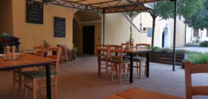 La Storia nás okamžite očarila svojím interiérom, ktorý je zariadený v rustikálnom štýle s klenutými stropmi, dreveným nábytkom a tehlovými stenami. Exteriér reštaurácie nás zasa zaujal svojou krásnou krytou terasou obklopenou zeleňou a kvetinami, ktoré poskytujú dokonalé miesto na vychutnanie si jedla na čerstvom vzduchu. Na terase sa nachádzajú drevené stoly a stoličky, ktoré spolu s mäkkým osvetlením vytvárajú romantickú a uvoľnenú atmosféru, ktorá je ideálna pre letné večery.