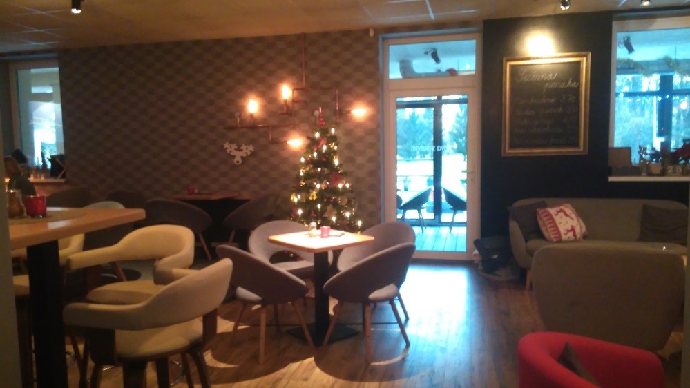 Táto kaviarnička sa nachádza hneď vedľa parku v centre mesta, takže už iba okolité prostredie navodzuje mimoriadne príjemnú atmosféru. Tá sa umocnila ešte viac v momente, keď sme do kaviarne vkročili. Bolo v nej len zopár ľudí, kde rozvoniavala káva a vonné čajové sviečky, ktoré boli na každom jednom stole. Hneď ako som vošla, do očí mi udreli police od zeme až po strop, na ktorých boli uložené najrôznejšie kávy, pričom na parapetách boli umiestnené presklené vázy s kávovými zrnkami, čo by ulahodilo nejednému kávičkárovi, no nie? Kaviareň má okrem iného aj zimnú záhradu, ktorá taktiež stála za to, avšak tá bola určená výhradne pre fajčiarov. V ponuke menu je aj zopár druhov cheesecakeov, ktoré boli vystavené pri pokladni. Bolo vidno, že ten, kto to tu zariaďoval, bol neuveriteľný puntičkár! Dokonca, Vianočná výzdoba bola naozaj prekrásna – nie len taká obyčajná, práve naopak! Bola premyslená do toho najnenápadnejšieho detailu, čo ocenia zákazníci aj s tým najväčším zmyslom pre detail a originalitu. Viem, že toto v bežnej recenzii asi tak ľahko nenájdete, avšak nedá mi to nespomenúť – toalety sú naozaj úžasné. Nie pre to, že by som sa vyžívala v takýchto veciach, ale keď som do nich vstúpila, uvidela som tam jednu veľkú skrinku, v ktorej boli tie najrôznejšie hygienické potreby – od dámskych hygienických vložiek až po lak na vlasy. Toto som naozaj ešte nikde nevidela a za to dávam tvorcovi tejto nápaditej myšlienky jedno veľké plus. Je to naozaj praktické, však?