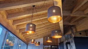 Terasa bistra poskytuje ideálne miesto na relax s výhľadom. Z terasy aj reštaurácie sa naskytajú krásne panoramatické výhľady na okolitú krajinu – vrcholy Radhošť a Veľký Javorník, hrebeň Beskýd a údolie Frenštátu pod Radhošťom. Výhľad je očarujúci najmä počas západu slnka, kedy sa celé údolie zalieva teplými farbami. Interiér bistra je zariadený moderne, no zároveň zachováva tradičné prvky, čo vytvára harmonickú atmosféru. Drevo je dominantným materiálom v interiéri a veľké presklené steny vpúšťajú dostatok prirodzeného svetla, čím priestor pôsobí vzdušne a otvorene. Zaujímavým detailom sú dizajnové svietidlá s kovovými tienidlami, ktoré dodávajú priestoru eleganciu a dotvárajú príjemnú atmosféru.