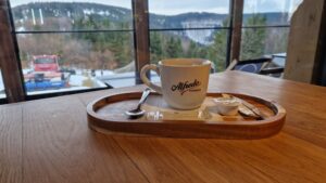 Bistro Pustevny funguje na princípe samoobsluhy, čo znamená, že si každý návštevník môže jedlo aj nápoje vybrať podľa vlastného vkusu. Na jedálnom lístku nájdete rôzne polievky, prílohy, mäsité jedlá, kapustu, vyprážaný syr, rezne, šaláty, parené buchty a dezerty. V nápojovom lístku nechýbajú rôzne alkoholické a nealkoholické nápoje, vína a miešané drinky. Po výdatnom obede sme si ešte dopriali šálku voňavého espressa. Bolo podávané na štýlovom drevenom podnose s malou lyžičkou, cukrom a smotanou. Káva pochádzala zo značky Alfredo Espresso, ktorá vznikla v roku 1979 v Hamburgu v Nemecku, a od svojho vzniku sa zameriava na autentické talianske kávové zmesi. Bohatá chuť tejto kávy bola ideálnou bodkou za naším príjemným obedom. Aj napriek tomu, že reštaurácia bola plná a museli sme si chvíľu počkať, obsluha bola milá a ochotná, čo umocnilo náš pozitívny zážitok z návštevy. Bistro Pustevny je ideálnym miestom pre každého, kto si chce vychutnať dobré jedlo, nádherné výhľady a kvalitnú kávu uprostred krásnej prírody Beskýd.