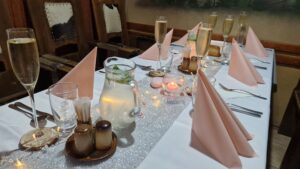Do Sedliackej Stodoly sme sa už viackrát radi vrátili, no tentokrát sme sem zavítali osláviť špeciálnu príležitosť – 1. narodeniny. V okamihu, keď sme prekročili prah, nás privítala hrejivá atmosféra drevom obloženého interiéru, kde sa snúbia prvky tradičného vidieckeho života s moderným pohodlím. Stoly pokryté obrusmi boli starostlivo prestreté a jemné svetlo sviečok dodávalo priestoru romantický nádych.