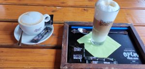 V Skalickej kolibe hostí radi privítajú na obed, večeru, kávičku alebo keď sa len tak po ceste z prechádzky alebo výjazde na bicykli zastavia na drobné občerstvenie. Posadili sme sa na krásnej veľkej terase a milá čašníčka nám priniesla ponukový lístok. V Skalickej kolibe pripravujú denné obedové menu, týždennú ponuku, poprípade si môžete vybrať aj z á la carte ponuky. Koliba sa zameriava na tradičné jedlá. V jedálnom lístku nájdete studené predjedlá, teplé predjedlá, polievky, ryby, bezmäsité jedlá, šaláty. Z hlavných jedál si môžete pochutnať na bryndzových haluškách, strapačkách. V ponuke nájdete aj grilované mäso, vyprážaný poľovnícky rezeň, medailóniky z bravčovej panenky, medailóniky z diviny, steak z hovädzej sviečkovice a veľa iného. Z nápojového lístka si môžete vybrať zo širokého výberu káv, nealkoholické nápoje, limonády, miešané alkoholické a nealkoholické nápoje, destiláty, aperitív, šampanské, víno značky Masaryk, pivo. Z danej ponuky sme si vybrali 2x cappuccino v hodnote 2€, latte macchiato v hodnote 2,20€ a limonádu. Pripravujú kvalitnú kávu značky Piazza d’Oro. Káva Piazza d’Oro má výraznú chuť, ale je skvelá. Talianska značka Piazza d’Oro sa stala medzinárodne uznávaným celostným konceptom zahŕňajúcim vybrané zmesi kávy, bezchybné služby a profesionálne vybavenie. Cappuccino bolo naservírované v elegantnej bielej šálke s logom spoločnosti Piazza d’Oro. Latte macchiato priniesli na štýlovej drevenej tácke, naservírované bolo vo vysokom sklenom pohári s rovnakým logom. Ku kávičke servírovali cukor, napolitánku, ale chýbal pohár s vodou. Na terase tejto rozprávkovej koliby sa nám sedelo úžasne. Nabudúce, keď budem v Zlatníckej doline, zavítam aj na salaš.