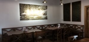 Budova tejto staničnej reštaurácie má kamennú fasádu a útulné vonkajšie posedenie, kde si návštevníci môžu vychutnať krásne výhľady na okoloidúce vlaky. Na stene je zavesený okrúhly štít s názvom reštaurácie „Lampáreň“ s vyobrazením vlaku. Táto reštaurácia vyžaruje rustikálnu eleganciu. Interiér reštaurácie pôsobí veľmi útulne a príjemne. Svetlé drevené trámy na stropoch a kombinácia teplých odtieňov na stenách vytvárajú príjemnú atmosféru. Oživením priestoru sú nostalgické čiernobiele fotografie, ktoré evokujú minulé časy a dodávajú miestu historický nádych. Barový pult je zdôraznený tmavším tehlovým obkladom, ktorý kontrastuje so svetlým zariadením a nadväzuje na rustikálny štýl. Najzaujímavejším prvkom dekorácie je však model vláčika umiestnený vysoko na stene, ktorý prechádza popri stropných trámoch a pridáva k charakteru reštaurácie hravý a originálny prvok. Tento model nielenže odkazuje na blízku Čiernohronskú železnicu, ale stáva sa neoddeliteľnou súčasťou zážitku z jedinečnej atmosféry miesta. Stoličky a stoly v reštaurácii majú jednoduchý, ale štýlový vidiecky dizajn, ktorý prispieva k celkovej útulnej atmosfére. Nábytok je z kvalitného dreva a v teplých prirodzených odtieňoch, čo podčiarkuje prírodný charakter reštaurácie. Súčasťou dekorácií sú aj klasické stolové lampičky a kvetinové aranžmány, ktoré dotvárajú príjemný pocit domova.