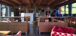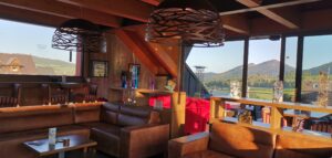 Interiér kaviarne je veľmi moderný a nadčasový, zariadený v drevenom štýle s dôrazom na detail. Kvalitný a elegantný nábytok vytvára útulnú a príjemnú atmosféru, ktorá láka návštevníkov k dlhšiemu posedeniu. V kaviarni dominujú dizajnové prvky, ako sú červená pohovka s kreslami, krb, obrazy, vankúše, drevené taburetky, knihy, sviečky, črepníková zeleň a lampy. Každý prvok interiéru je starostlivo vybraný a umiestnený tak, aby vytváral harmonický a pohodový celok. Priestor je nádherne presklený, čo umožňuje dostatok prirodzeného svetla a ponúka krásne výhľady na okolitú prírodu. Presklené steny kaviarne vytvárajú dojem, akoby ste boli súčasťou vonkajšieho prostredia, pričom si stále užívate pohodlie interiéru. Exteriér kaviarne sa rozprestiera na priestrannom balkóne, ktorý je zariadený ratanovým nábytkom. Z balkóna sa naskytá očarujúci výhľad na Belianske Tatry a zelené lúky v okolí, čo prispieva k celkovému zážitku z návštevy. Atmosféra kaviarne STONE CAFFÉ je veľmi príjemná a uvoľnená. Moderný interiér, kombinovaný s tradičnými prvkami, vytvára jedinečný pocit pohody a komfortu. Pohodlné sedenie a príjemné osvetlenie robia z kaviarne ideálne miesto na oddych po náročnom dni strávenom objavovaním krás Ždiaru a jeho okolia.