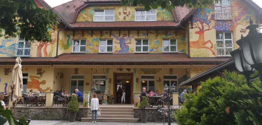 Umelecké dielo na fasáde: Hotel Encián sa nachádza v kúpeľnom mestečku Rajecké Teplice, ktoré je známe svojimi termálnymi kúpeľmi a nádhernou prírodou. Presne pri Labuťom jazierku, len 100 metrov od s...