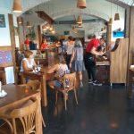 Obe boli zariadené vo folklórnom štýle s drevenými stolami a zdobené ornamentami na stenách. V pozadí gruzínskej hrala tradičná hudba čo pridávalo na atmosfére. V tej prvej boli v ponuke hlavne tradičné Kchachapuri. Je to gruzínsky horúci chlieb plnený rozmanitými plnkami. Ja som však zvolila Odjakhuri. Korenisté bravčové mäsko so zemiakmi, červenou paprikou zapekané v hlinenej miske posypané čerstvým koriandrom.