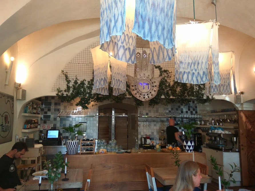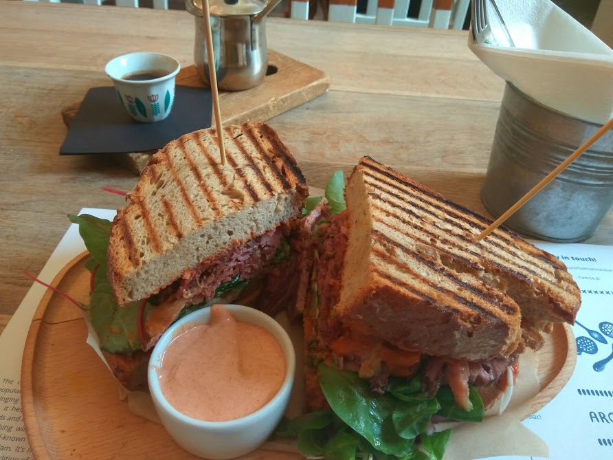 Nezameniteľnú atmosféru má židovská štvrť Kazimiersk. Tu odporúčam vyskúšať jednu zo židovských reštaurácií. Ja som skúsila Izraelskú reštauráciu Hamsa so židovskými špecialitami. Je zariadená v orientálnom štýle, pričom pozostáva z viacero miestností. Čo ma zaujalo, disponuje množstvom zelene. Z ponuky som si vybrala Hamsa pastrami. Boli to veľké toasty s hovädzím masom, omáčkou muhamara, z pečenej papriky a orechov, pickles, papričkami jalapeňos, kozím syrom a šalátom. V každej židovskej reštaurácii mávajú v ponuke kávu v džezve. Pripravuje sa z na jemno zomletej kávy a zmesi orientálneho korenia. Väčšinou je to kardamon a badyán. Je hustá a sladká. Chuťovo je značne odlišná napríklad od espressa.
