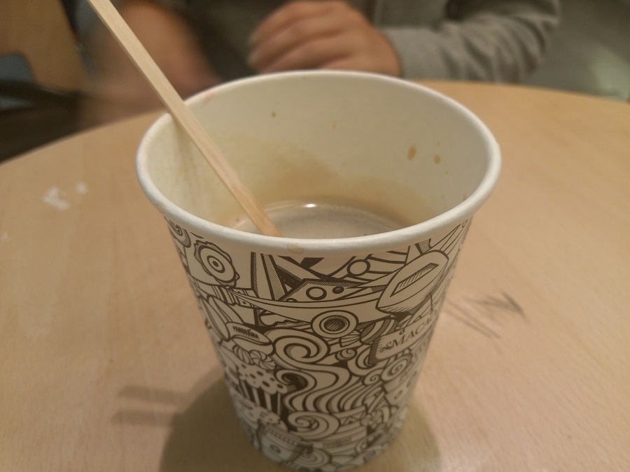 Káva – tak teda samotná káva, keď si odmyslíte ten plast (mne osobne to nevadí, ale viem, že  väčšine populácie v poslednú dobu áno), tak niekedy ono dávajú aj do papierových pohárikov. Takže možno niečo záleží podľa toho, čo vychytáte. Tentokrát som dostala kávu opäť do papierového poháriku. Takže samotná káva bola dobrá. My sme si dali dvojité expresso, keďže sme potrebovali skutočne prebrať, čakala nás totiž ešte dosť dlhá túra po meste a to všetko peši. Jednoducho, cestovali sme vlakom 6 hodín. Fakt sme potrebovali niečo, čo nás postaví na nohy. A toto sa aj stalo. Káva bola dosť silná a bola veľmi dobrá. Takže za mňa áno. Ono robia jú v kávovary, tak nie je asi moc čo pokaziť.