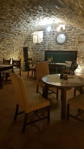 Zlatá Pivnička je ideálnou zmesou starodávnej architektúry a moderných prvkov. Interiér kaviarne má tri časti – takzvané podbránie, letnú záhradu a podzemnú pivnicu. Podbránie je priestor pod bránou, kde majú krásne zariadenú krytú terasu. V tomto priestore ma zaujali rôzne doplnky, akými sú obrazy, vešiaky, šijací stroj a veľa iného. Vaše ratolesti tam isto objavia aj detský kútik. Keď pôjdete ďalej do záhrady, nájdete tam otvorenú letnú terasu s pekným ratanovým nábytkom a pieskoviskom. Táto letná terasa je skvelým miestom na relax. Takže či je zima alebo teplo, tak si tu nájdete svoje miestečko na posedenie. Aj napriek tomu, že bolo vonku pekne, rozhodili sme sa, že si pôjdeme sadnúť dole do pivničky. Možno skôr zo zvedavosti sme chceli vidieť, ako to vyzerá v pivničných priestoroch, ktoré sa premenili na kaviareň. Vo vstupe do pivničky nás na drevenej tabuli privítal príjemný nápis: „Cíťte sa tu ako doma.“ A veru sme sa tak aj cítili. Priestor pivnice ma viacero romantických zákutí. Taktiež oceňujem krásne prevedenie barového pultu. Jednoducho všetko so všetkým tu ladí. Pivnica je obložená kamenným obkladom, čo krásne dotvára atmosféru. Nájdete tam klenbené steny, starožitný nábytok, staré šijacie stroje, dobové kreslá, sudy, keramiku, obrazy, knihy, kanvičky na mlieko, truhlice, dobové oblečenie, písací stroj, sošky, lampy, krásne lustre, fľaše a veľa iného. Aj keby sa mohlo zdať, že je priestor preplácaný, opak je pravdou, pretože celá kaviareň je zariadená vkusne, štýlovo a hlavne s citom pre detail. Je vidieť, že si dali majitelia záležať. Tieto pivničné priestory sú, samozrejme, tmavšie a chladnejšie, ale v teplejších mesiacoch to isto hostia veľmi ocenia.
