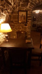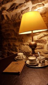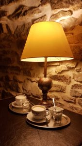 V čase našej návštevy bola kaviareň prázdna. Milá a ochotná čašníčka nám priniesla ponukový list. Tento ponukový list mal pekné prevedenie, nakoľko bol vložený v drevených doskách. Ponuka je zameraná na široký výber káv, kvalitné alkoholické a nealkoholické nápoje, horúcu čokoládu, čaj, domáce limonády, destiláty, pivo. A ako by to vyzeralo, keby v pivničke neponúkali kvalitné a chutné víno. Zákusky majú v ponuke 3-4 rôzne druhy, vždy čerstvé a aj bezlepkové. V Zlatej Pivničke taktiež ponúkajú kvalitné a chutné pokrmy. Vraj jedlo z tejto prevádzky je priam gastronomický zážitok. Lenže my sme jedlo neochutnali, tak moju predchádzajúcu vetu, prosím, berte len, že jedna pani povedala. Nakoľko sme nemali veľa času, objednali sme si len cappuccino. Cappuccino bolo servírované na striebornom podnose s pohárom vody. Kávu podávajú značky Primo Aroma. Jedná sa o exkluzívnu taliansku kávu. Môžem povedať, že sme si na kávičke veľmi pochutili, bola výborná. Ako rada by som napísala, že túto jedinečnú kaviareň čoskoro navštívim. Za iných okolností by som tak určite urobila, lenže Spišská Nová Ves je od môjho bydliska vzdialená okolo 300 km. Ale na druhej strane to nie je na konci sveta a možno sa tam ešte niekedy zatúlam.